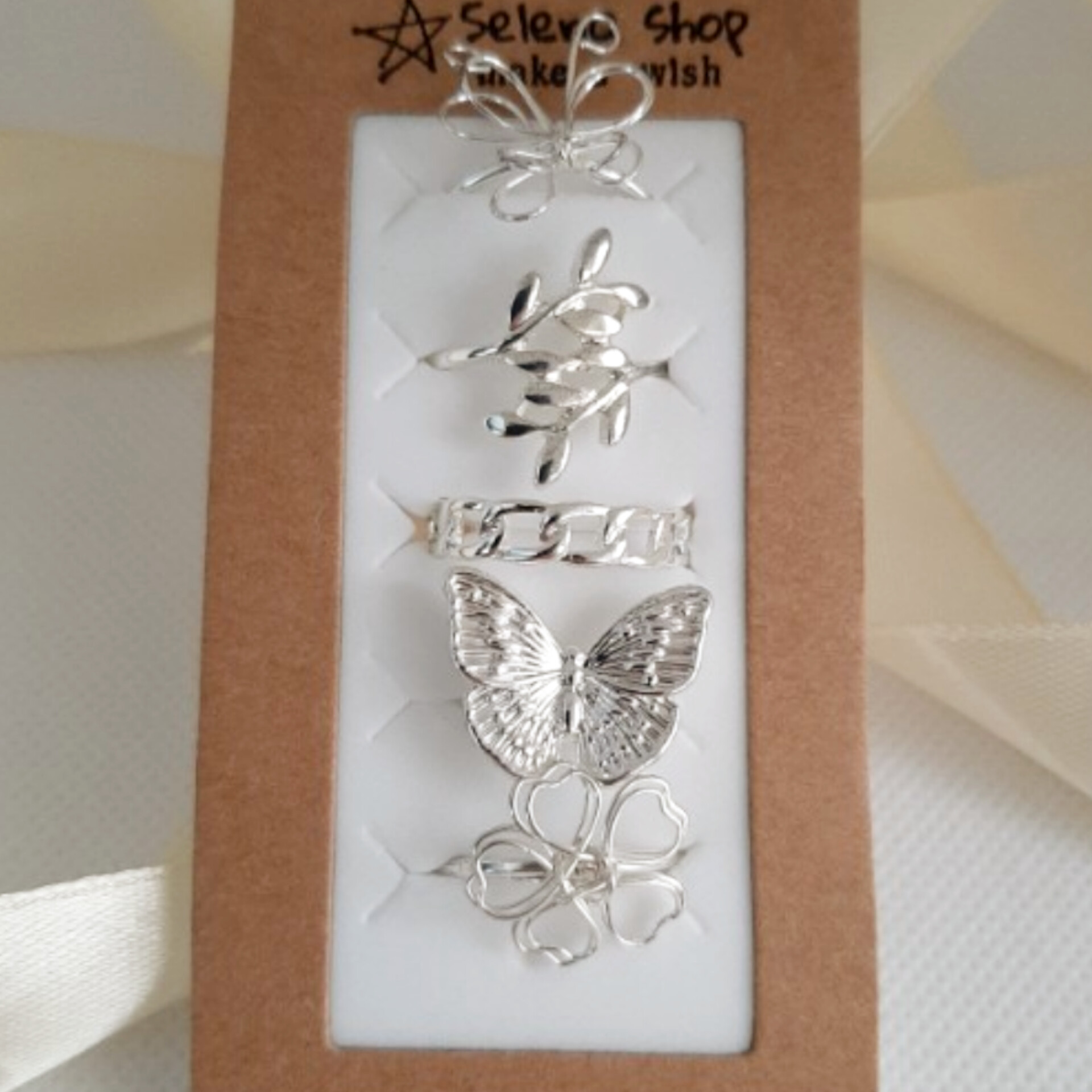 پک انگشتر استیل نقره ای طرح گل و پروانه
